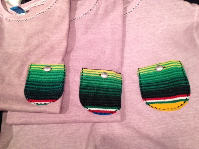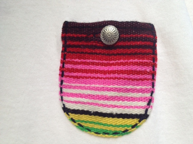 ベーシックなクルーネックのTシャツにメキシコのセラペブランケット