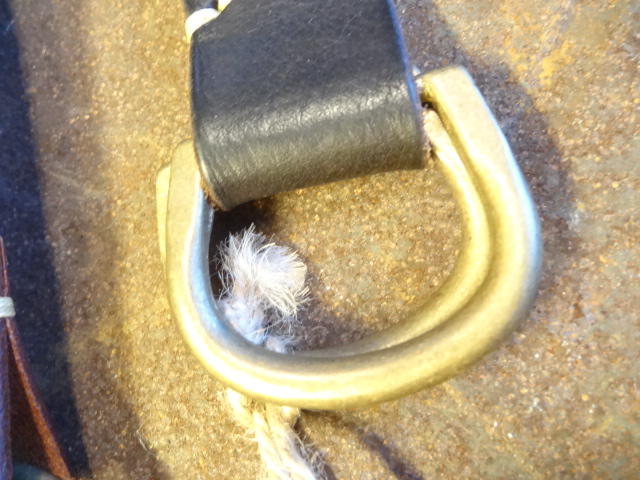 ブラウンのレザーにオイルをしみ込ませ色を黒っぽく仕上げているので